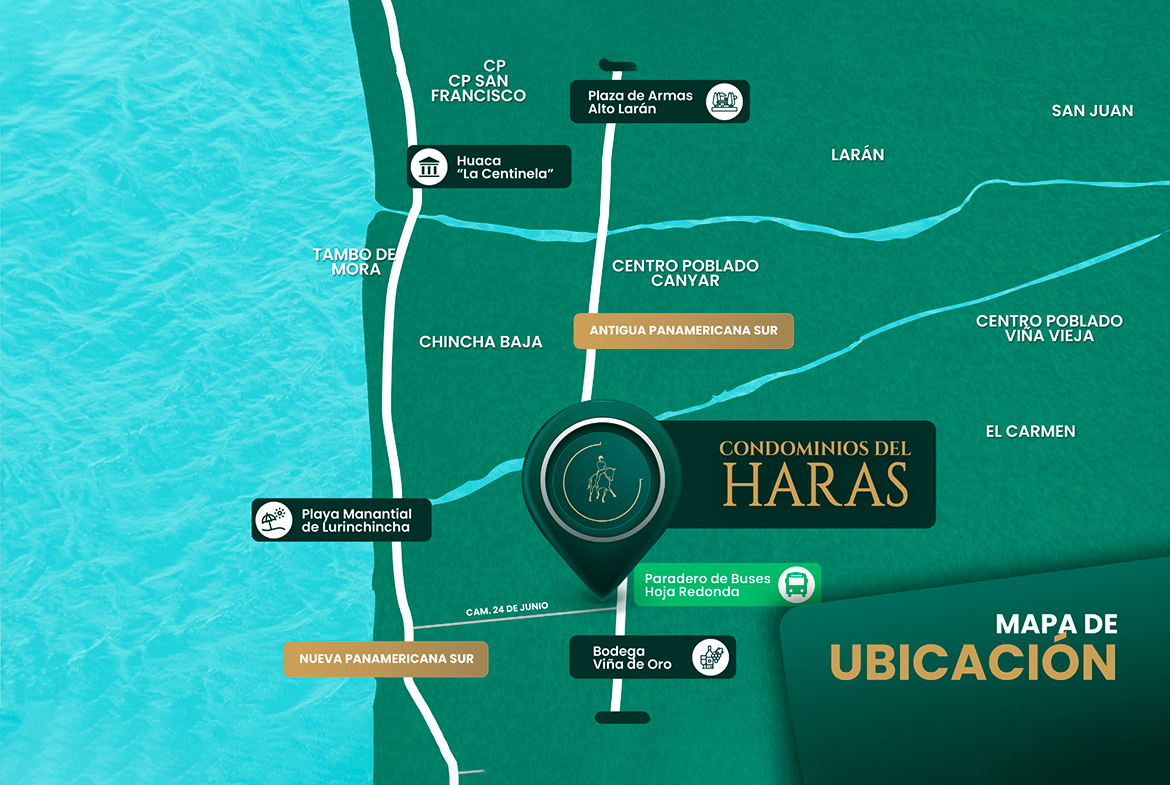 Ubicado estratégicamente en el Km 202 de la Nueva Panamericana Sur, Condominio del Haras le ofrece la oportunidad de poseer un espacio exclusivo a solo dos horas y media de Lima. Con una extensión de 4 hectáreas y solo 70 lotes seleccionados, este proyecto destaca por dedicar más del 40% de su área total a espacios comunes y áreas verdes, garantizando un entorno espacioso y privado para su familia.